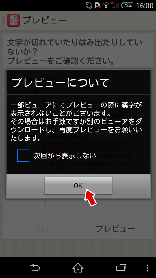 ここで、実際の履歴書がどのように印刷されるかチエック可能です。